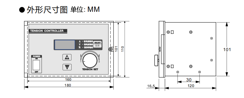 - 采 用 按 鍵 和 脈 沖 電 位 器 調 節 張 力。