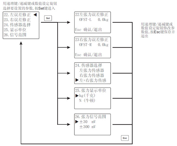 當測量值發生零點偏移時,如偏移誤差較小,可以對傳感器誤差進行修正,通過修正可以校正零點,所設置的修正值將加到張力顯示值中,如偏移誤差較大,應對控制器進行重新標定。