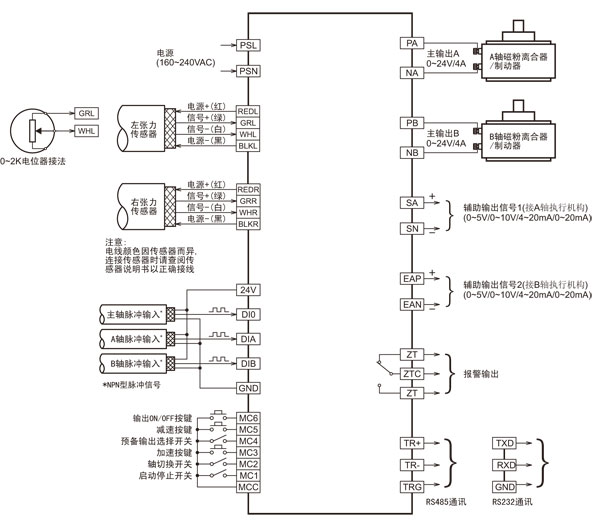 可以接收單路/雙路傳感器輸入信號,適應各種張力傳感器作為輸入信號使用: